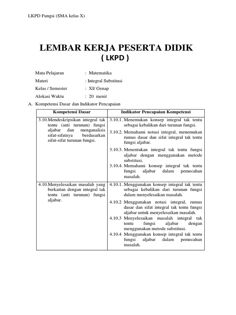 Pm Integral Paket 1 Worksheet from files.liveworksheets.com Sep 03, 2020 · integral tentu. Berbeda dengan integral tak tentu, integral tentu memiliki yang namanya batas atas dan batas bawah. Bagaimana untuk penyelesaian integralnya menggunakan teknik substitusi? Merubah dari bentuk yang belum dikenal menjadi lebih mudah dikenal atau bentuk primitifnya. Integral merupakan bentuk pada operasi matematika yang menjadi kebalikan atau disebut invers dari operasi turunan dan limit dari jumlah ataupun suatu luas daerah. Jul 14, 2021 · integral dibedakan menjadi dua, yaitu integral tak tentu dan integral tentu. Rumus umum dari integral substitusi yakni : Nov 17, 2020 · bentuk integral ini sesuai dengan teorema 1, di mana , , dan.